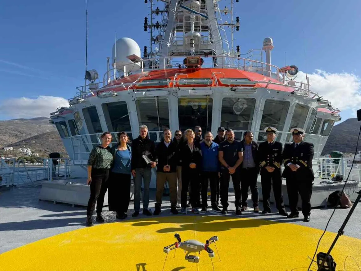 Ο κ. Παπασταύρου, με τον Γενικό Γραμματέα του Υπουργείου Ναυτιλίας και Νησιωτικής Πολιτικής κ. Βαγγέλη Κυριαζόπουλο, τον Δήμαρχο Αμοργού κ. Λευτέρη Καραΐσκο, τον Πρόεδρο κ. Μιχάλη Κρόσμαν και μέλη του ΔΣ του Επαγγελματικού Συλλόγου Αλιέων «Παναγία Χοζοβιώτισσα», μετέβησαν στο υπερσύγχρονο σκάφος της Ευρωπαϊκής Υπηρεσίας Ελέγχου της Αλιείας (EFCA) Ocean Sentinel, το οποίο κατέπλευσε χθες στην Αμοργό. Σε συνεργασία με τις αρμόδιες ελληνικές Αρχές, θα συμβάλλει στην επιτήρηση των Περιοχών Περιορισμού Αλιείας του νησιού. Πάνω στο σκάφος ο Υπουργός ενημερώθηκε από την Εκτελεστική Διευθύντρια του EFCA, Dr. Susan Steele, τόσο για το έργο της Υπηρεσίας, όσο και για τις δυνατότητες του Ocean Sentinel, το οποίο μόνο πέρυσι πραγματοποίησε 4.500 επιθεωρήσεις, εκπαιδεύοντας τους επαγγελματίες εντός του σκάφους.