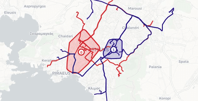 Οι οδικοί άξονες του κέντρου της Αθήνας και το κομμάτι της δυτικής Αττικής γύρω από τον (συνηθέστερα μποτιλιαρισμένο) Κηφισό, σημειώνονται ως τα σημεία της Αττικής με τον μεγαλύτερο φόρτο στο οδικό δίκτυο (Πληροφορίες: inrix.com)