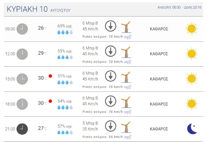 Γενικά αίθριος προβλέπεται ο καιρός για σήμερα στιςΚυκλάδες, σύμφωνα με την πρόγνωση της ΕΜΥ. Οι άνεμοι στο Αιγαίο θα πνέουν από βόρειες διευθύνσεις 6 με 8 μποφόρ. Η θερμοκρασία θα κυμανθεί από 24 με 32 βαθμούς Κελσίου.