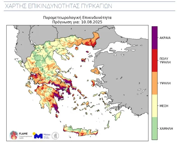 Χάρτης επικινδυνότητας εκδήλωσης και εξάπλωσης πυρκαγιών/meteo.gr