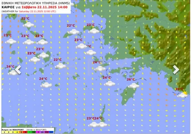 Αραιές νεφώσεις κατά τόπους και κατά διαστήματα πιο πυκνές προβλέπονται για σήμερα στιςΚυκλάδες σύμφωνα με την πρόγνωση της ΕΜΥ. Οι άνεμοι στο Αιγαίο θα πνέουν από νότιες διευθύνσεις 4 με 6 μποφόρ. Η θερμοκρασία θα κυμανθεί από 16 έως 24 βαθμούς Κελσίου.