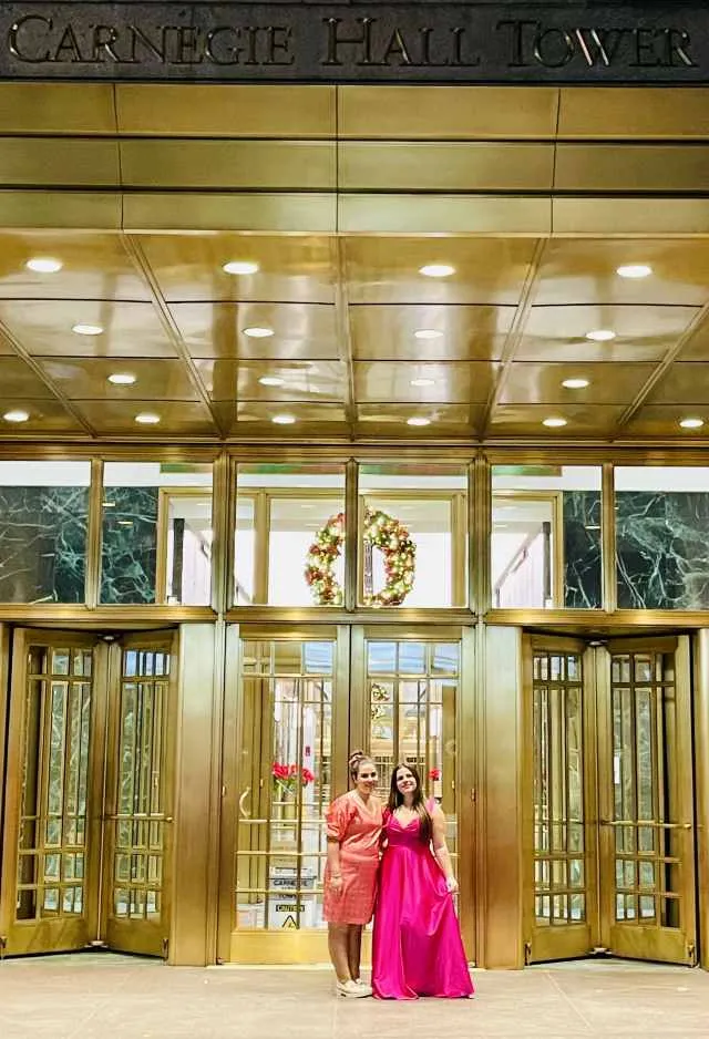 Οι δύο πιανίστριες στην είσοδο του θρυλικού Carnegie Hall στη Νέα Υόρκη