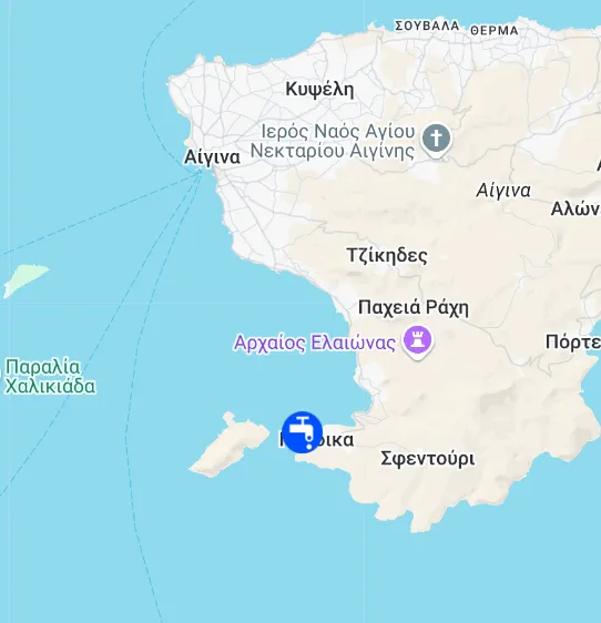 Τμήμα από τον χάρτη της Πάτμου που αποτυπώνει το σημείο εγκατάστασης της αφαλάτωσης [Πηγή: Ομάδα ΒΙ.Δ.Α.]