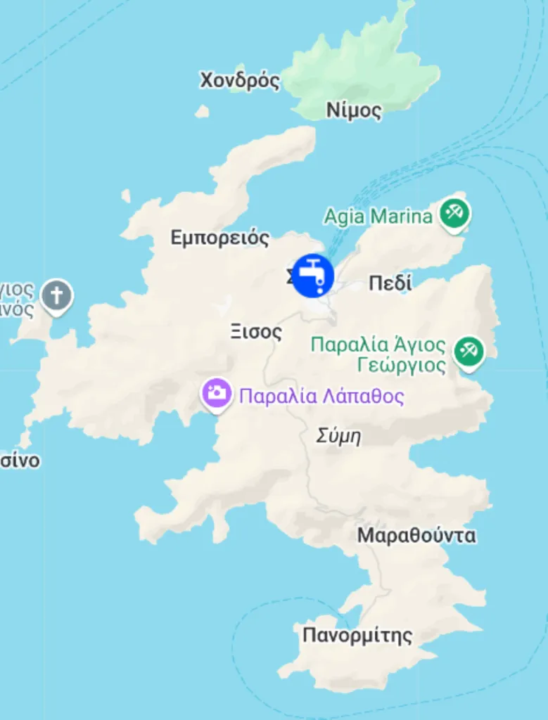 Τμήμα από τον χάρτη της Σύμης που αποτυπώνει το σημείο εγκατάστασης της αφαλάτωσης [Πηγή: Ομάδα ΒΙ.Δ.Α.]