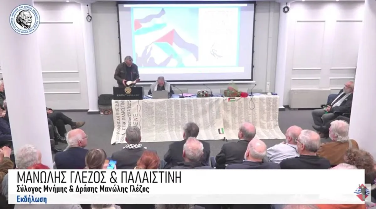 Κεντρικός ομιλητής της εκδήλωσης, ο Marwan Toubassi, Παλαιστίνιος αγωνιστής, επί σειρά ετών πρέσβης του Κράτους της Παλαιστίνης στην Ελλάδα, εκλεκτός φίλος και συναγωνιστής του Μανώλη Γλέζου, ο οποίος ανακηρύχθηκε και επίτιμο μέλος του Συλλόγου. Στην εκδήλωση παραβρέθηκαν πρέσβεις, προσωπικότητες του πολιτικού και κοινωνικού χώρου, καθώς και εκπρόσωποι φορέων αλληλεγγύης στον παλαιστινιακό λαό.